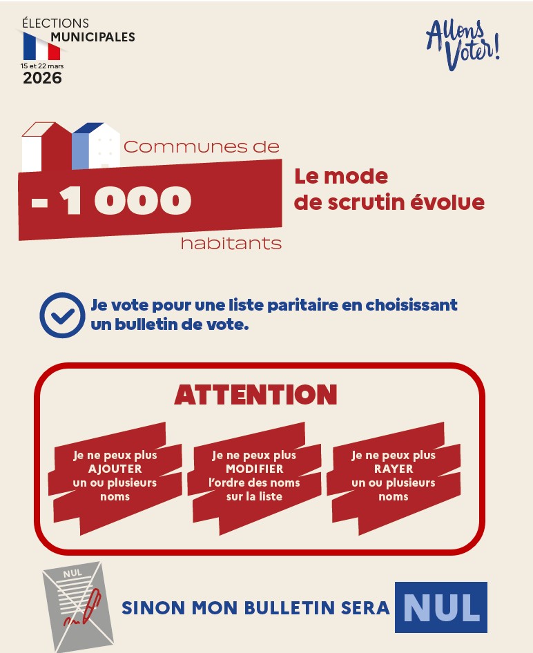 Le scrutin est désormais un scrutin de liste paritaire (alternance femme/homme). Vous pourrez seulement voter en faveur d’une liste. Il n’est plus possible de voter pour des candidats qui se présentent individuellement.