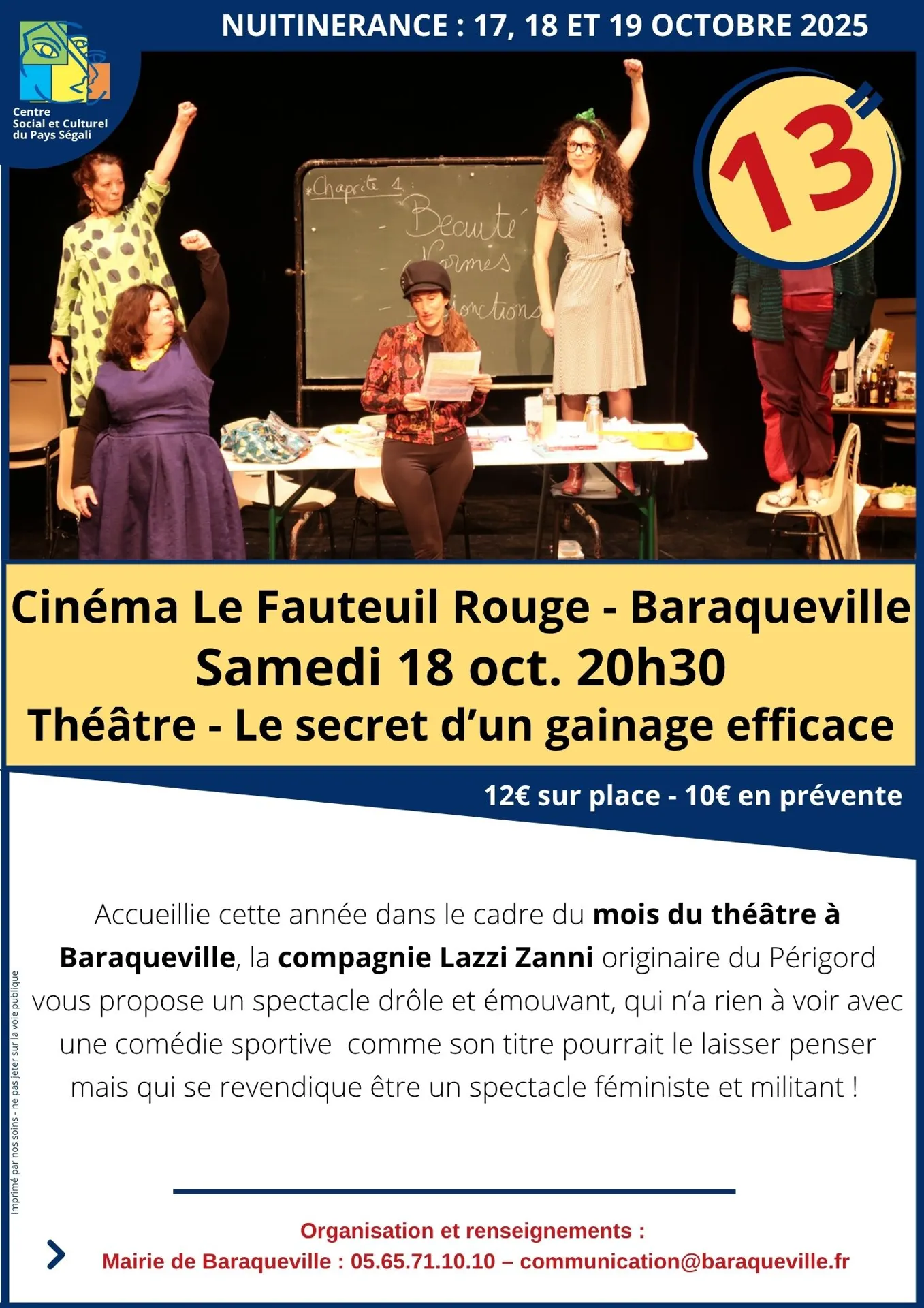 Accueillie cette année dans le cadre du mois du théâtre à Baraqueville, la compagnie Lazzi Zanni originaire du Périgord vous propose un spectacle drôle et émouvant, qui n’a rien à voir avec une comédie sportive comme son titre pourrait le laisser penser mais qui se revendique être un spectacle féministe et militant !