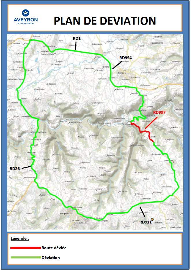 Dans le cadre de la tranche 2 des travaux engagés par le Conseil départemental de l’Aveyron pour la modernisation et la mise en sécurité de la R.D. 997, la circulation sur cette route départementale sera interdite sur le tronçon situé entre l’embranchement haut de la Route de la Sarrette vers Rignac (PR 7,750) et après l’embranchement avec la Route des Planques (PR 10,500) du 06 octobre 2025 au 05 juin 2026. La desserte des propriétés riveraines sera néanmoins maintenue.